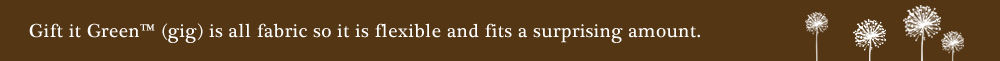 HOME : SHOP : RETAILERS : HOW IT WORKS : SIZE GUIDE : WHY GIG : PRESS : FAQ : BLOG : CONTACT © 2012 All Rights Reserved Gift It GreenTM LLC, Reusable Fabric Gift Boxes Proud supporter of Peggy Notebaert Nature Museum Site Design by toad creative : Photography by Michael Fortner Photography |